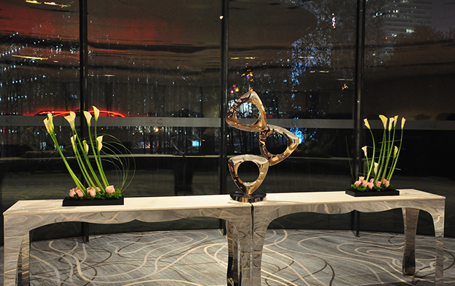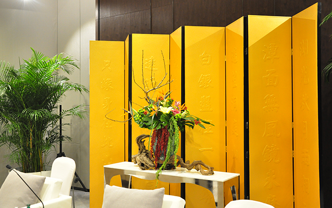 上海市花木有限公司承接了上海中心五楼会务层的上海市申办工作领导小组接待第46届世界技能大赛考察评估团的场地花艺布置任务。上海市申办工作领导小组要求通过现场的花艺向世界展示上海的技能水平,为上海申办工作加分。公司员工根据不同会场环境、运用不同的中西式花艺手法和国内外切花植物,定制了“龙飞凤舞”、“春意”、“都市韵律”、“绿色城市”、“天圆地方”等多个插花花艺作品,将中国的古典诗画美,以及上海的活力、热情和海纳百川的精神全面诠释和表达,给考察评估团成员们留下了深刻的印象。